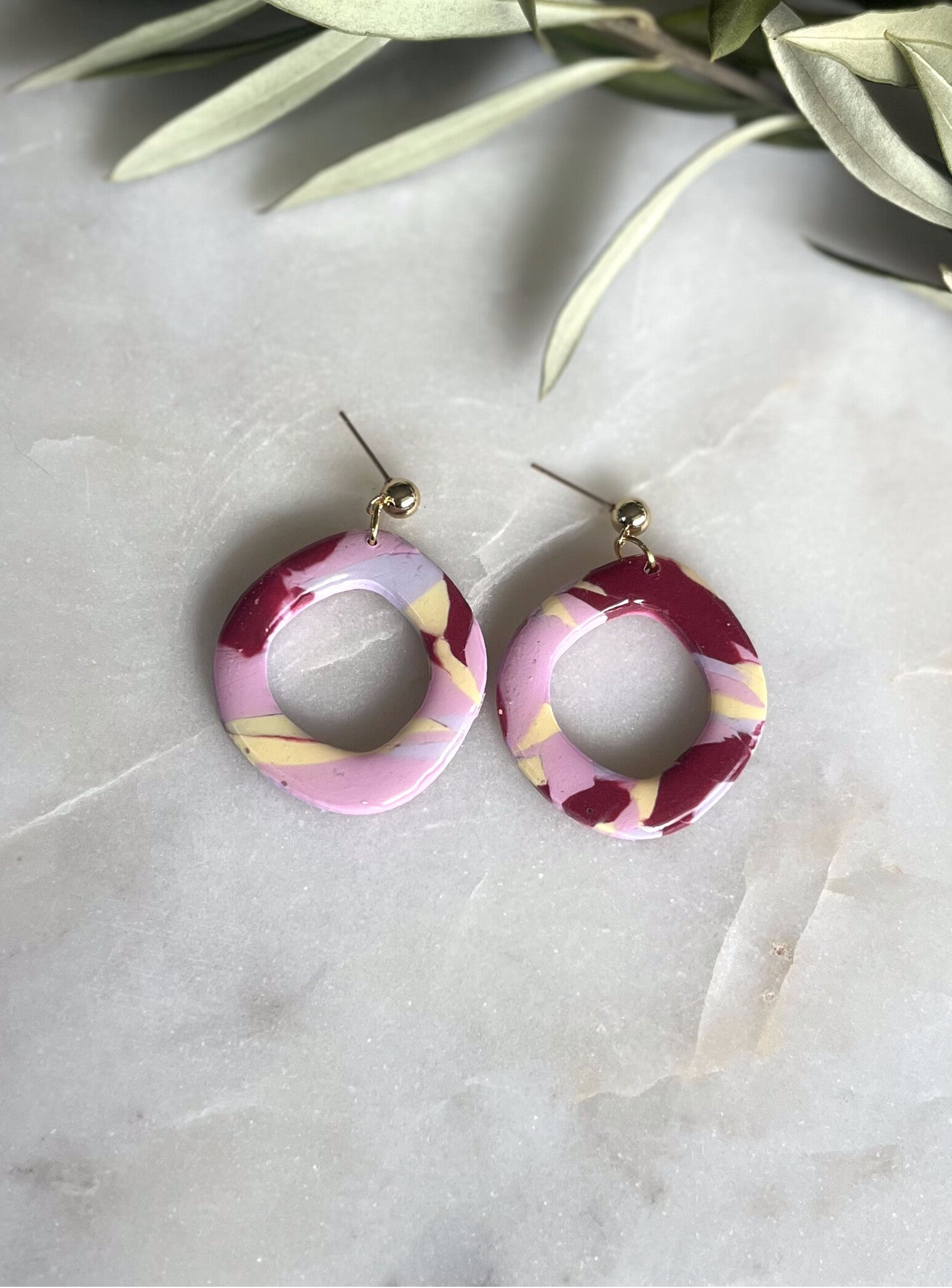 Hangemaakt met liefde en oog voor detail. Deze klei oorbellen zijn licht van gewicht, uniek in vorm en stralen pure eenvoud uit.