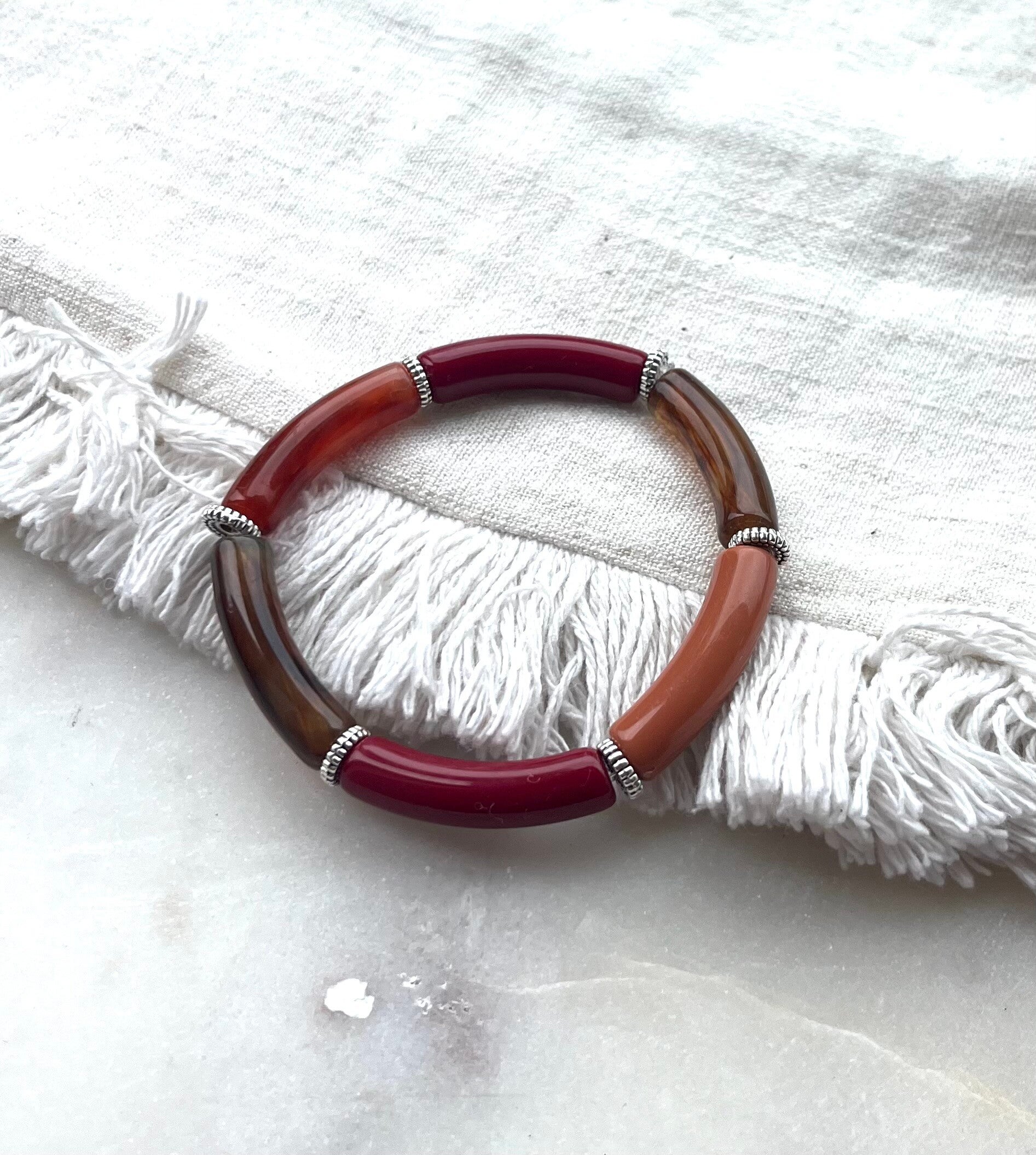 Tube armbanden Camel, bordeauxrood en bruin.