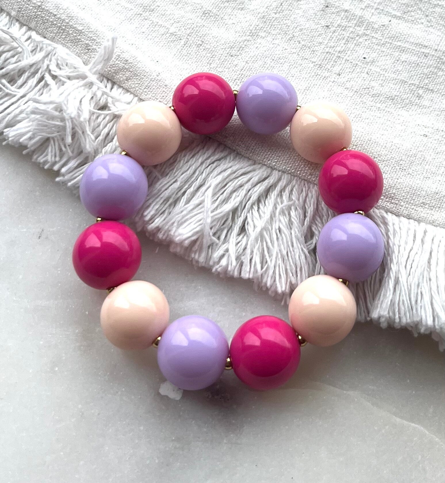De trend van nu is een chunky armband van kleurrijke ronde kralen.