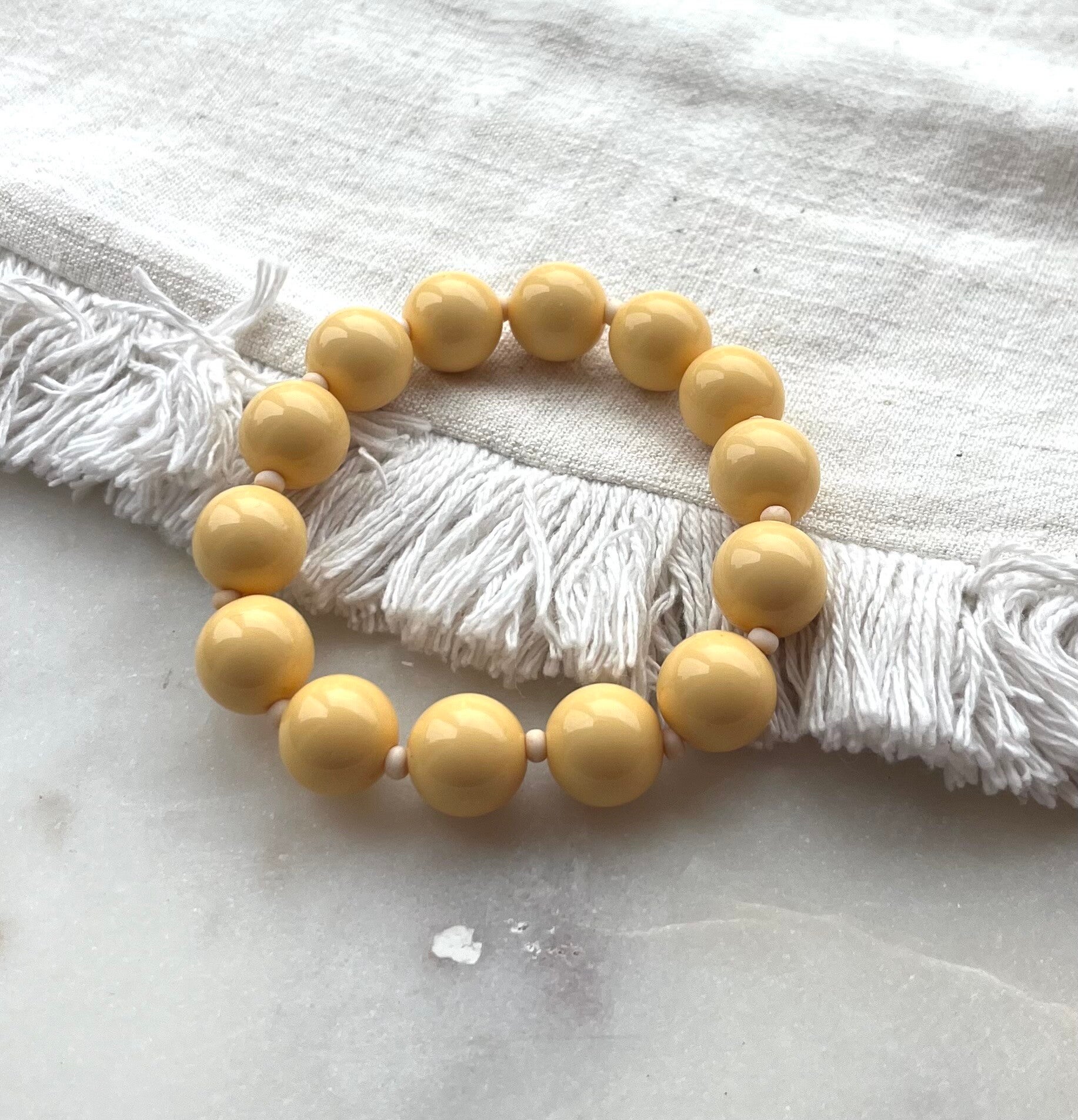 De trend van nu is een chunky armband van kleurrijke ronde kralen.